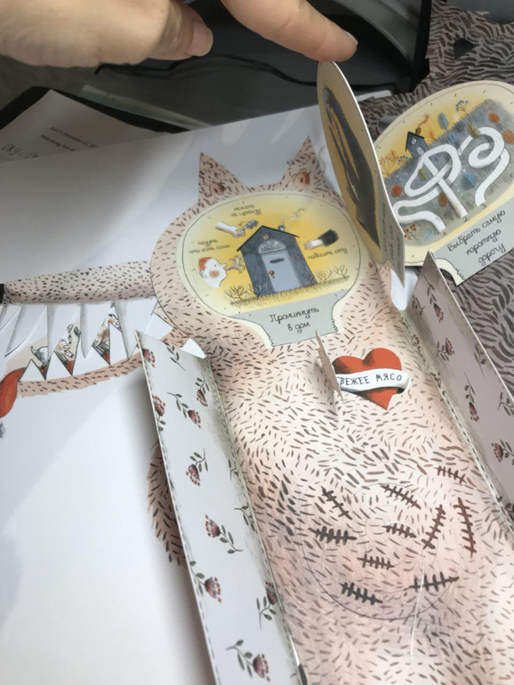 Хорошая и качественная полиграфия, материал из которого изготовлена книга матовый белый картон ( не плотный конечно в смысле дубовый), все элементы книги подвижны без затруднений, все хорошо отпечатано, закреплено ( и хочется сказать как в рекламе - а запах мммм) прям тепленькая только - только из печати и тут же к читателям.