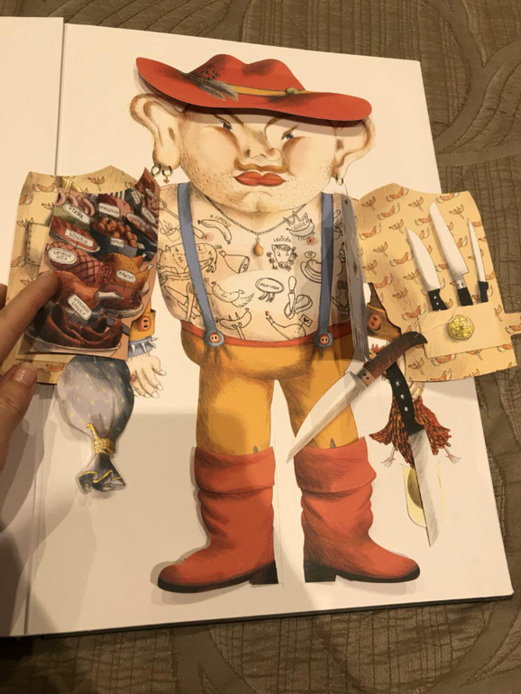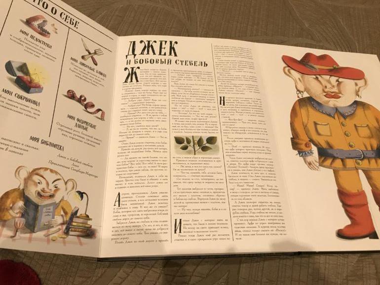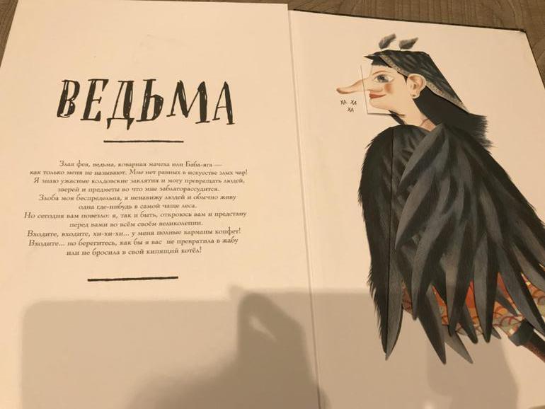 Итак книга большого формата, интересно оформлена,своего рода резюме на трех персонажей , плюс сопроводительная сказка с участием данного персонажа и сам персонаж - как он устроен, и все это в шуточной форме, отметающее кучу вопросов про то, как волк съел бабушку, почему людоед такой и какие ведьмы бывают обманчивы.