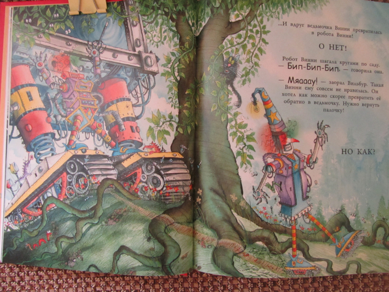 Как всегда всё очень красочно и смешно, хохотали от рассеянности ведьмочки из-за которой она всегда попадала в какие -нибудь курьезные ситуации, дети были в восторге от книги, просят теперь всё время её перечитывать. Иллюстрации очень необычные, на первый взгляд такие неряшливые (но это только на первый взгляд) со множеством интересных деталей. Знаю, что у этой серии есть несколько авторов, так вот у Валери Томаса нет никаких ругательств и ведьмочка вызывает только положительные эмоции )) Жаль, что именно этого автора пока нет других книг..
