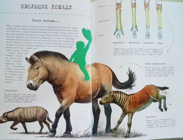 От тираннозавра к петуху! Большая книга эволюции животного мира издательства Пешком в историю. Ну насчет большая я бы поспорила, в ней 40 стр, и заканчивается она как то очень быстро, но все таки есть что посмотреть, поизучать, а порой и поужасаться)