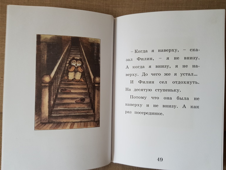Это очаровательные истории о простодушном филине. Идеальная книга для начального чтения - истории короткие и смешные, шрифт крупный. Я, можно сказать, от книги в восторге. Дочка тоже - раз она мне эту книгу вслух прочла)