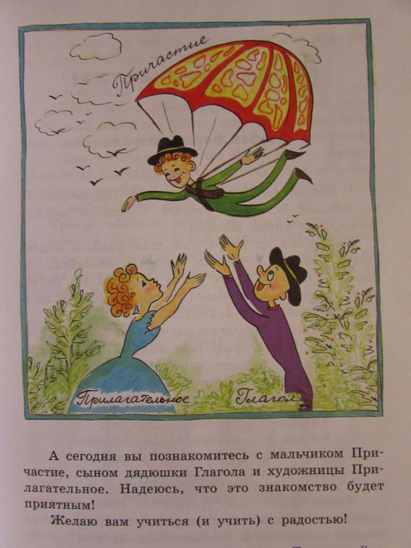 Мальчик Причастие - это сын дядюшки Глагола и художницы Прилагательное.