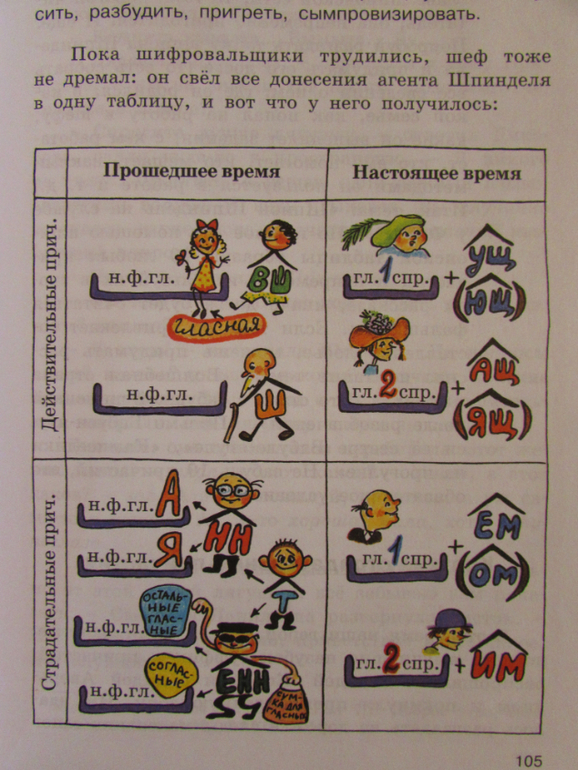 Здесь в сказочно - приключенческой форме объясняются трудные правила, а веселые тексты учат правильно писать причастия и ставить запятые при причастных оборотах.