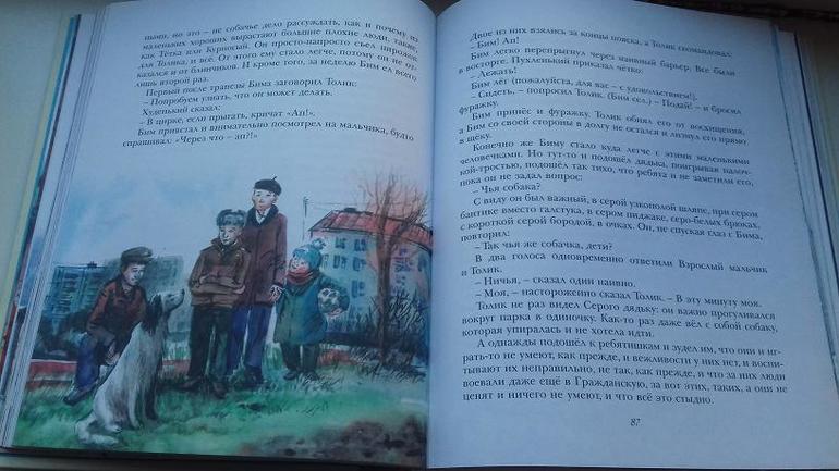 Первым был прочитан "Белый Бим Черное ухо"( сразу об издании: у меня недорогая, но очень приятно оформленная книга от "Махаона")