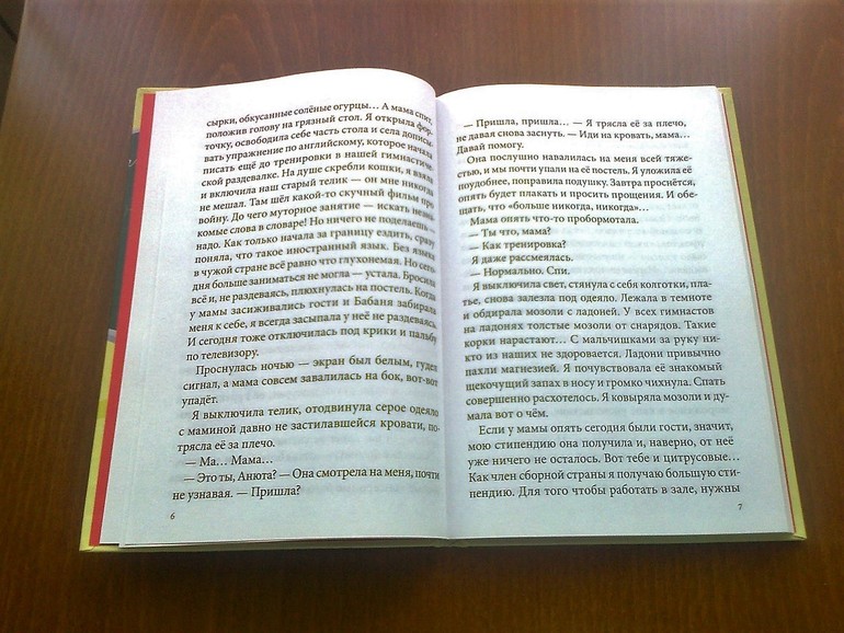 В книге две главные героини - 13-летняя Аня, с пяти лет занимающаяся спортивной гимнастикой, и её тренер Ирина. Спортивная карьера одной только начинается, у второй уже закончилась, началась тренерская работа. Аня и Ирина по очереди рассказывают о своей жизни, в которой есть и большие победы, и чемпионаты за рубежом, и золотые медали, и всё бы хорошо, если бы не обычная человеческая жизнь, ибо после тренировок ты возвращаешься домой - и что-то (или кого) ты там найдешь?
