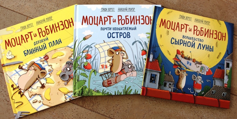 Моцарт домашняя мышь, а Робинзон полевая. И благодаря любопытству Моцарта, пересилившему страх улицы, они встретились. Встретились, познакомились, поспорили, нашли общую идею, воплотили ее в жизнь и улетели на луну. Хорошо, что луна не далеко оказалась. Люди-то встречаются им спокойные. При виде мыши произносят только «фу, мышь». ))) В общем, луна оказалась почти сырная или почти луна. Ребята поели и домой пошли.