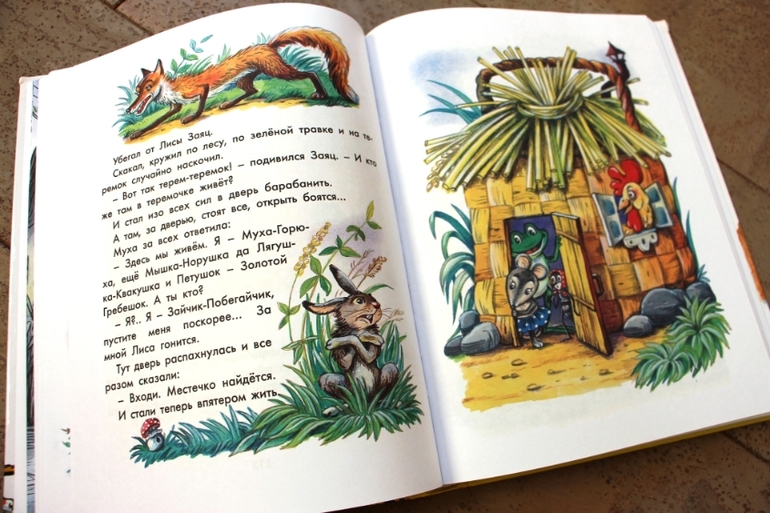 Книга очаровательного квадратного формата. Яркая, с крупным текстом, яркими иллюстрациями, в верой обложке (я страсть не люблю тонкие книги), но легкая. Сын прямо полюбил маленькие книги таскает их везде с собой. Тут особенно к месту твердая обложка.