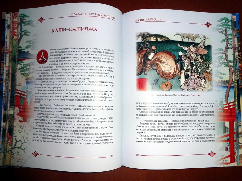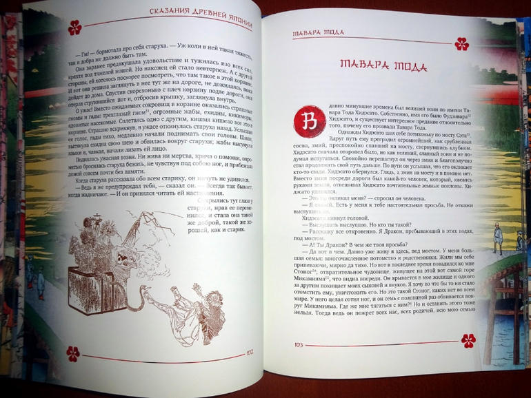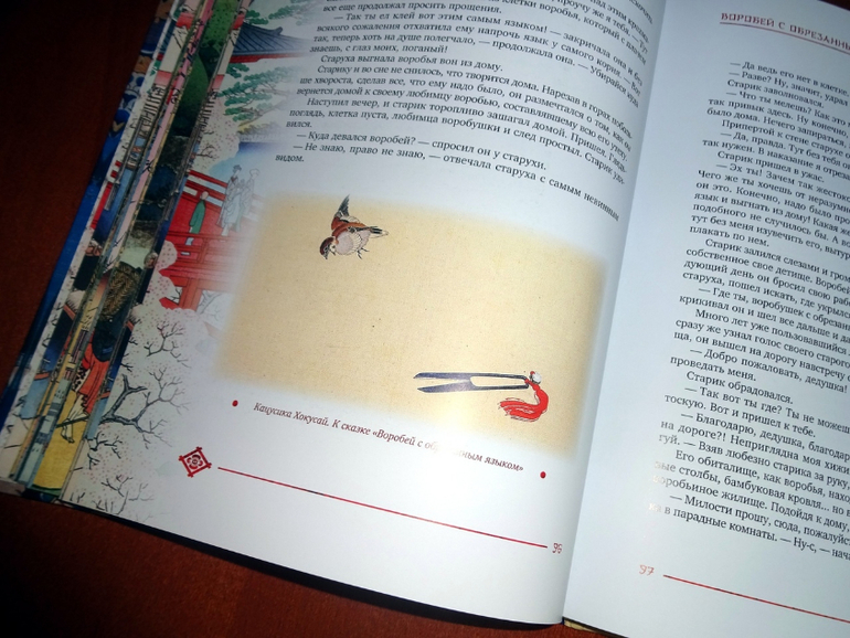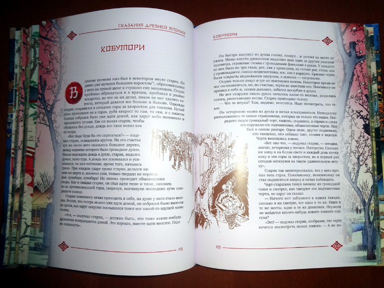 В книге 24 древние легенды и сказания из коллекции японского писателя Садзанами Сандзина, которые он собрал "по различным источникам", обработал и изложил современным, доступным языком. Есть и всем известные, например, "Воробей с обрезанным языком", "Иссумбоси", которые вы прежде наверняка читали в переводе Веры Марковой.