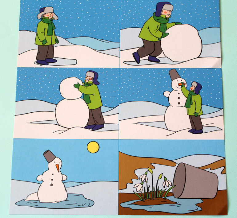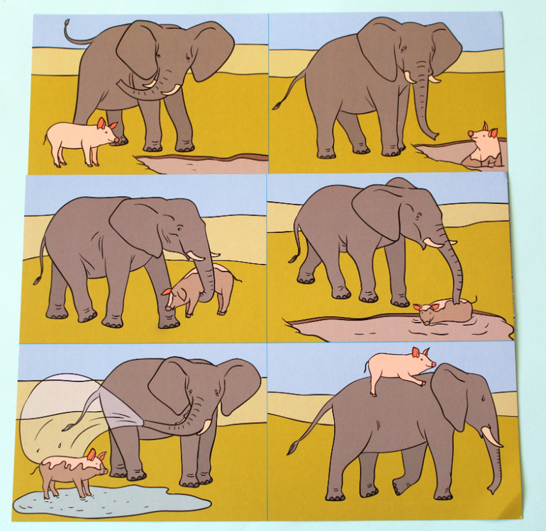 Единственное, что меня удивило в этом наборе, это карточки к заданию №9 "Расскажи историю". Набора картинок два. К "Снеговику" вопросов нет, а вот "Слон и поросёнок" удивили. Составить рассказ, конечно, можно, но, хотелось бы более правдоподобных рисунков, чтобы у ребёнка не было каши в голове. Ни под один из видов африканских свинок поросёнок с картинки не подходит. Сам сюжет не удивляет, пусть слон помыл поросенка, посадил себе на спину и повёз куда-то, сказки тоже нужно тренироваться сочинять. Вопрос именно к изображению свиньи. Был бы нарисован бородавочник, вопросов бы не возникло. А это пособие для педагогов! Что, если после этого теста у ребёнка в голове отложится, что розовенькие домашние поросятки бегают по пустыне вместе со слонами?! Я за более внимательное отношение художников к таким деталям. В нашем случае, я просто взяла картинки из другого набора.