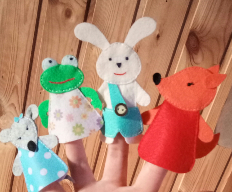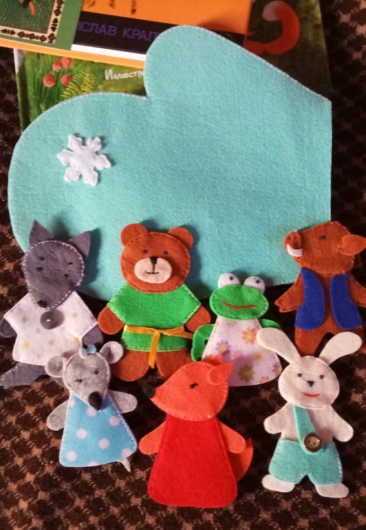 Звери просто загляденье, какая жилетка у быка, а шортики у зайчика, и поясок у мишки меня поразил) Да и не просто звери, а пальчиковый театр!
