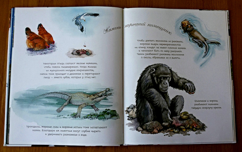 Книга рассказывает о камнях путешествующих по бескрайнему космическому пространству. Описывает, как камни используют животные, чтобы добыть моллюска из раковины или разбить твердую скорлупу ореха. Например, птицы глотают мелкие камешки, чтобы помочь пищеварению. "А крокодилы, морские львы и морские котики заглатывают камни. Благодаря им животные могут глубже нырять и удерживать равновесие в воде".