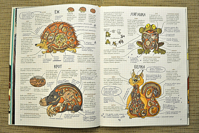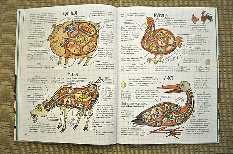 Мне лично импонирует, что здесь не представлено энциклопедичное описание строения внутренних органов, это наши дети и так узнают в средней школе на уроках биологии. В книге информация дается в шутливой форме, в виде «схем».