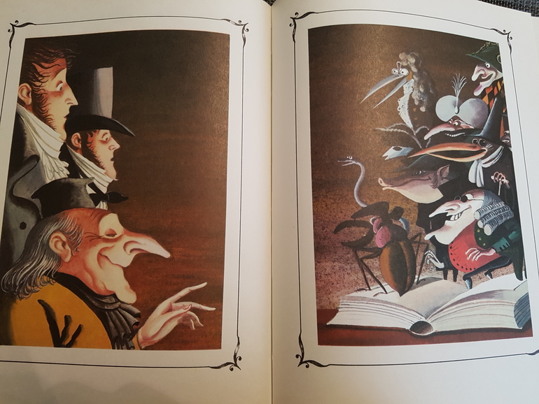 В книге иллюстрации Алимова, отлично дополняют и передают суть сюжета, но их крайне мало, тот случай когда устаёшь читать до картинки))).