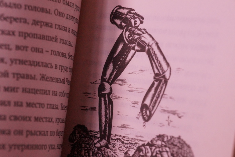 Сюжет -на земле появляется гигантский робот, он же Железный человек которого земляне не очень рады видеть, потому что он ест их предметы из железа, они пытаются уничтожить его,но маленький мальчик решает проблему тем, что провжает человека на свалку металлолома,где он и остается жить и поедать не нужное уже никому железо, не принося вреда никому. Через некоторое время из космоса прилетает страшный дракон размером с целую Австралию, куда он и приземляется, кстати. Человечеству говорит о том что надо его кормить, хоть чем- деревьями, животными,людьми и природой. Люди конечно не знают что делать, потому что прокормить дракона размером с Австралию невозможно, рано или поздно он съест всё И тогда мальчик приходит железному человеку и просит его помочь. Железный человек придумывает план, заключает с драконом пари вроде как, если дракон выдержит то же что и железный человек, то тот будет ему служить. Далее железный человек готовит печь раскаленную, ложится на эту печь его раскаливают докрасна, потом говорит что чтобы дракон также раскалился как он, только полежав на солнце . Так происходит два раза- в первый раз дракон еле-еле долетел до земли с ободранной кожей и вообще весь начал плавиться, потом второй раз- то же самое еле добрался. И вот железный человек третий раз лег на печь, дракон понял что этого уже не переживет и признал своё поражение. Железный человек спрашивает что тот умеет делать, а дракон говорит что ничего он не умеет. И вообще драконы-такие существа которые летают в космосе и поют музыку сфер. И все драконы белые пушистые ,от этой музыки всем становится хорошо, мировая гармония и так далее. И прилетел он на землю только потому что услышал как люди воюют и ему тоже захотелось. Тогда железный человек говорит ему чтоб он спел, дракон начинает петь ,все люди слушают и им сразу становится хорошо, не хочется воевать и весь мир живёт просто счастливо и тд. Вот такая история то ли с глубоким текстом, то ли с глубоким подтекстом Ну я понимаю что это война, противоборствующие какие-то государства. Может быть я упустила какие-то моменты важные в книге, не знаю, но в общих чертах как смогла рассказала. Во-первых тяжело читаемый текст, по крайней мере для меня, рекомендовано для самостоятельного чтения детей от 6 до 9 лет. Во-вторых- конкретно мне не понравился нисколечки сюжет -этот дракон как агрессор, противоборствующие стороны непонятно с какой целью пришедшие, увидел что люди воюют присоединился к войне ,а на самом деле опять же он белый и пушистый. То есть не Железный человек по идее спас мир , а дракон которого он взял в рабство, и тот умел петь такие песни, что люди перестали воевать вообще. Как по мне -это бред полнейший, но книжка экранизирована, хотя немножко не по тексту. Но в принципе примерно один и тот же сюжет. Хотя может быть фильм и лучше.