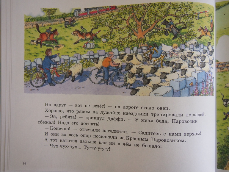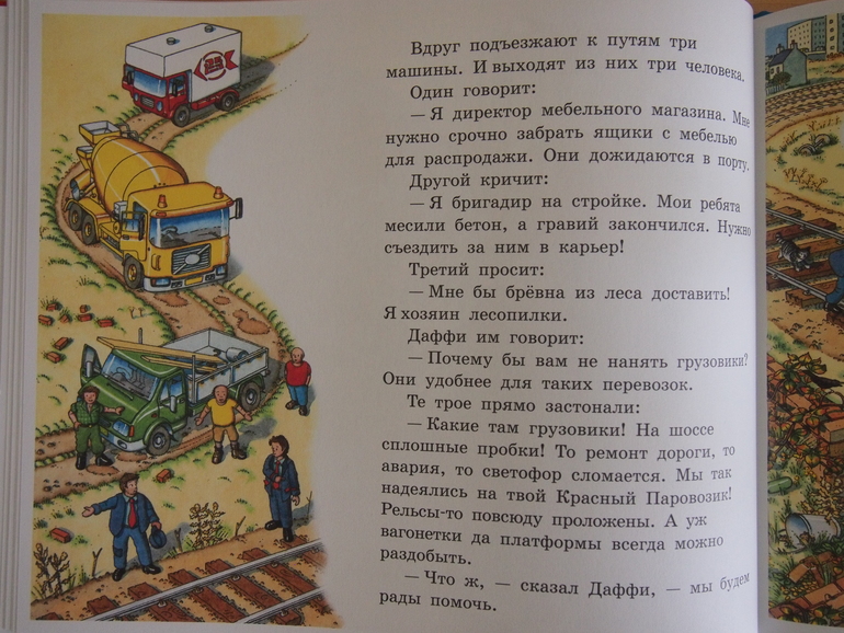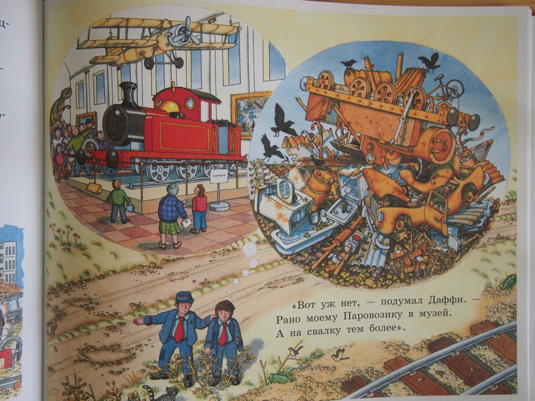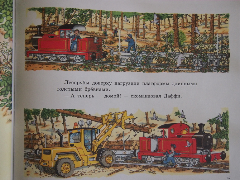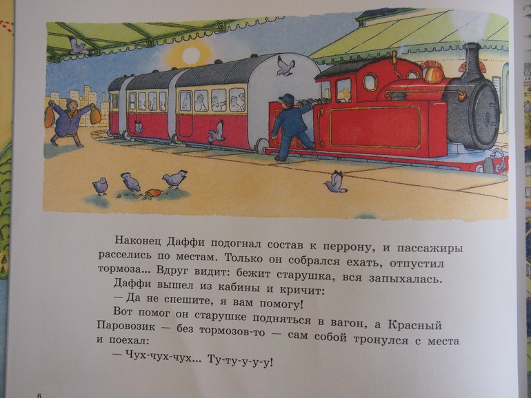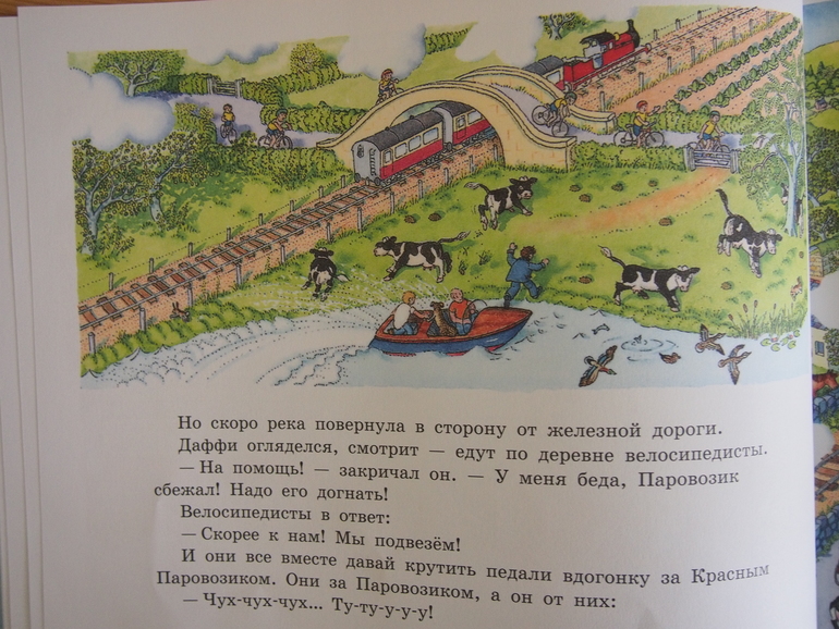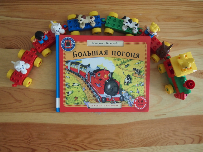 Так у нас появилась первая книга из серии о красном паровозике «Большая погоня». В книгу «Большая погоня» вошли две истории о приключениях Красного Паровозика и его друга - машиниста Даффи: «Большая погоня» и «Паровозик-великан».