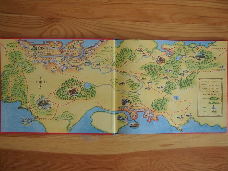 Форзацы книги украшает карта местности, на которой можно найти все станции, где побывал Красный Паровозик, и проложить маршруты, описанные в рассказах.
