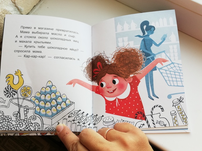 Истории достаточно короткие и с юмором, дочка слушает, смотрит на картинки и посмеивается над проделками маленькой девочки. Книга открывает возможности для фантазии и игр. Как частенько замечает другая наша сообщница, тоже Елена, хороши книги, когда их можно обыграть. Вот в данном случае даже напрягать свои извилины не нужно, придумывая игру, все на поверхности. Моя дочка и до этого строила гнезда и высиживала птенцов. Один раз даже построила гигантское гнездо из всех имеющихся в доме паззлов, конструкторов и папиных шнурков, последние выступали в роли червяков для птичек. И не спрашивайте, сколько времени я потратила на обратную сортировку и уборку этого "гнезда". Отвечаю: много 😂. С книгой мы вспомнили все опять, и опять дочка стала птичкой и у нас дома появился детский сад для птенцов ). Потом дочка стала кошкой, потом собачкой, в общем, весело нам ).