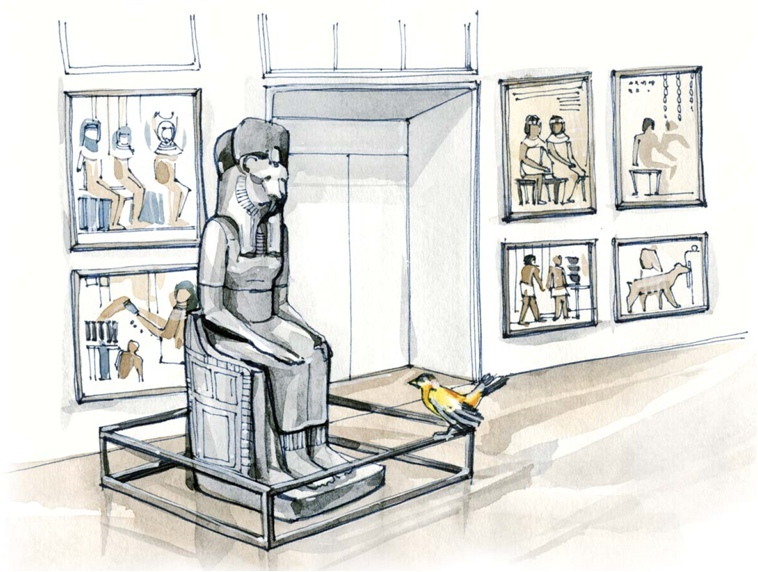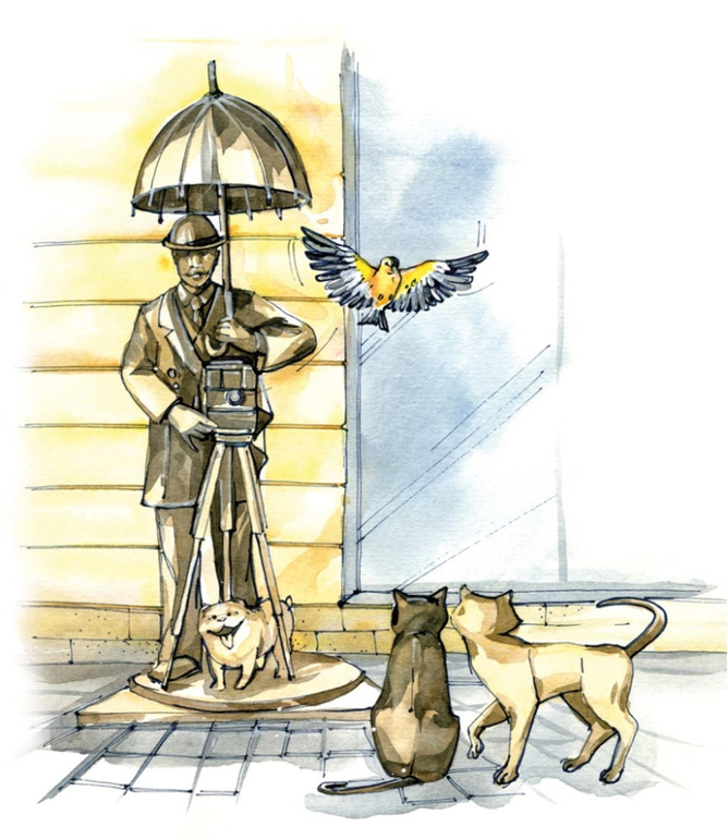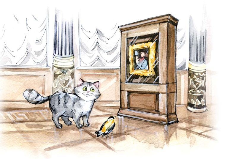У всем известного знатока Петербурга и искателя приключений Чижика-Пыжика опять выдалась беспокойная ночка. Сначала ему пришлось поработать птичкой, а это очень ответственная задача даже для Чижика. Затем он совершил путешествие во времени на семьдесят пять лет назад, чтобы узнать о подвиге ленинградских кошек. И, наконец, попал в "место для уединения", где однако вовсе не страдал от одиночества, а напротив, узнал много интересного и нашёл нового друга. Им оказался эрмитажный кот Василий, который познакомил Чижика с тайнами Древнего Египта, заставил поломать голову над загадкой золотого павлина и даже помог ему принять участие в самом настоящем рыцарском турнире!