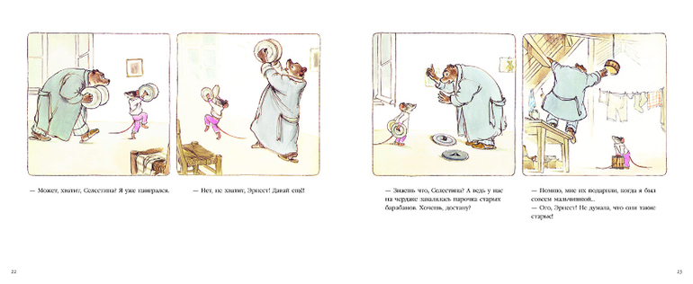 Cерия книжек-картинок о приключениях добродушного медведя по имени Эрнест и его «приёмной дочери», маленькой мышки Селестины принесла бельгийской художнице Габриэль Венсан (1928-2000) мировую известность.