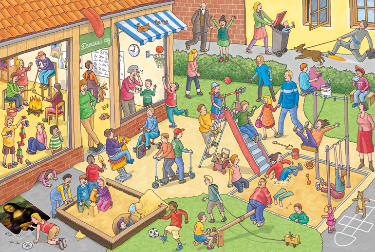 Внимательный читатель найдет в этой книге десятки забавных и добрых историй! Рассматривая виммельбухи, то есть книги без слов, дети развивают наблюдательность, учатся видеть и подмечать детали, прослеживать логические связи между событиями, самостоятельно составлять рассказ по картинкам.
