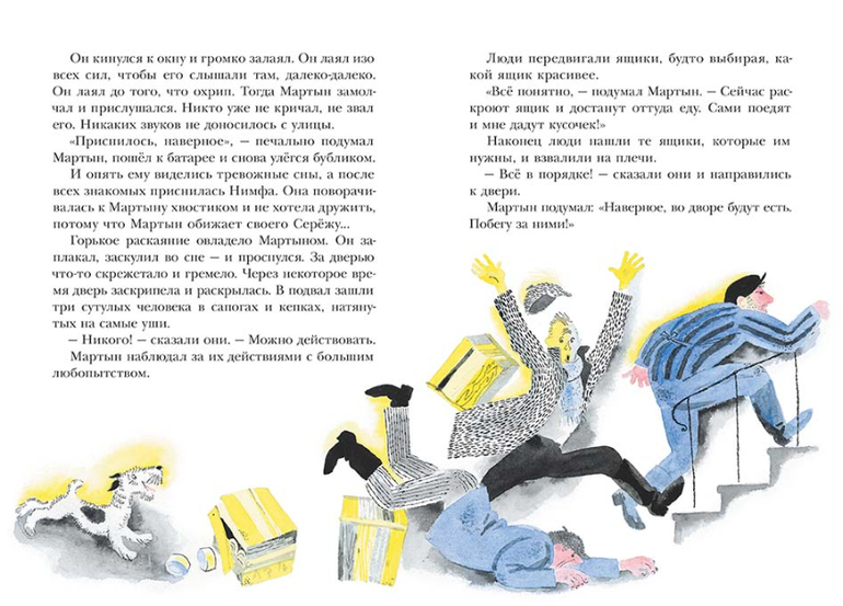 Фокстерьер Мартын обожал гулять и каждый раз после прогулок с хозяином, мальчиком Сережей, не хотел возвращаться домой! Однажды он увидел, что дверь на лестницу приоткрыта, воспользовался этой, как ему показалось, прекрасной возможностью и со всех лап помчался на улицу. Тут-то его и поджидала череда приключений. Выяснилось, что люди - как взрослые, так и дети - могут быть не только хорошими, но и плохими; что еду надо добывать на помойках, а иногда даже голодать; что весёлая погоня за коварной кошкой закончится в холодном подвале, из которого будет не так-то просто выбраться.