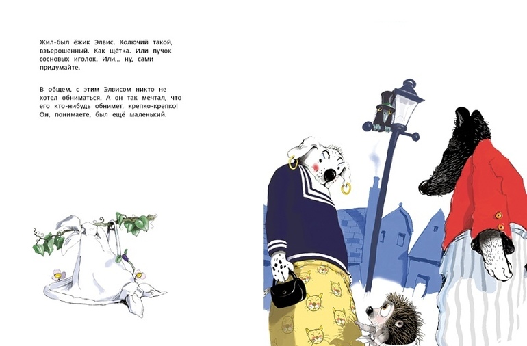Больше всего на свете ёжик Элвис хотел, чтобы его кто-то обнял. Но никто не отваживался даже прикоснуться к нему, ведь он был таким колючим. Куда бы Элвис ни пришёл, все только качали головами и отворачивались… И вот в один прекрасный день его жизнь изменилась. Эта книга о том, как колючий ёжик с добрым сердцем нашёл себе друга. А также о потребности каждого человека преодолеть расстояние, отделяющее его от других. Английский писатель Джон Роу сочинил эту маленькую историю для детей, но она снискала любовь читателей разных возрастов во всём мире. Книга была переведена на многие языки. Весной 2008 года она стала одним из главных событий Международной ярмарки детской литературы в Болонье.