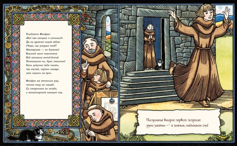 Эта книга расскажет об открытии поистине мирового масштаба. Когда-то, много веков назад, скромные и прилежные монахи во множестве святых обителей занимались созданием и сохранением величайших произведений античности. Благодаря им сохранились бесценные рукописи наших предков. Монахи переводили их и переписывали страница за страницей. Но долгое время работали они однообразными темными чернилами, пока однажды кто-то любопытный и смелый не решил выйти за рамки привычного… Несмотря на то, что монах Феофан - это собирательный образ таких монахов-переписчиков, его история поможет представить их жизнь и расскажет о том, как книга стала настоящим произведением искусства.