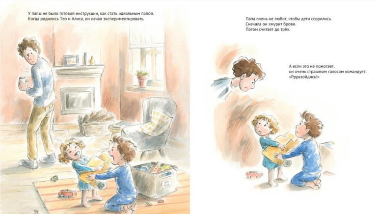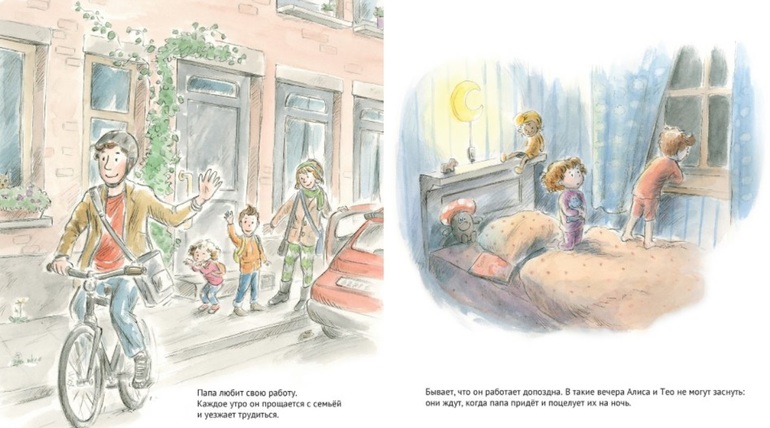 Папа Алисы и Тео такой же, как все папы на свете: иногда сердится, иногда поздно приходит с работы, иногда требует, чтобы дети не шумели и не мешали сосредоточиться.