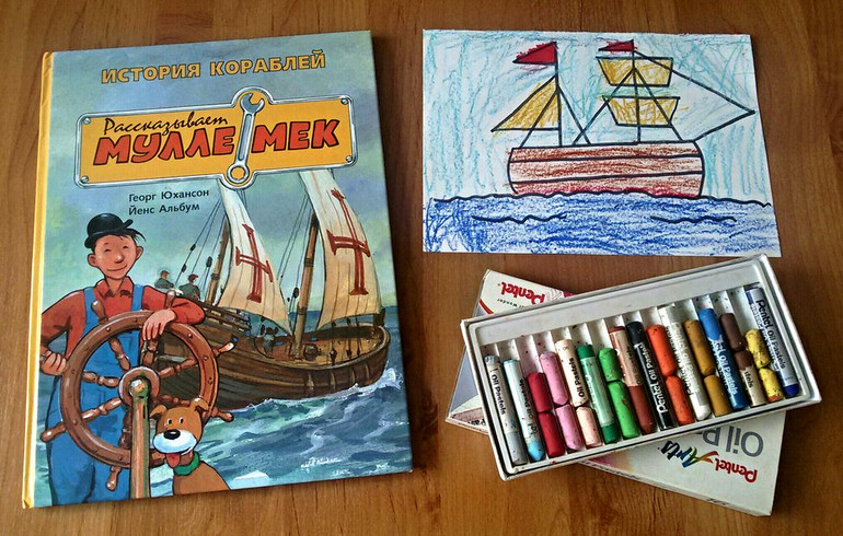 Следующая книга уже не рассказ про Мулле Мека и его собаку Буффу. Это уже небольшая энциклопедия о кораблях для маленьких слушателей с любимыми героями. Информация обо всем, конечно, очень краткая, но изложена в простой и доходчивой форме.