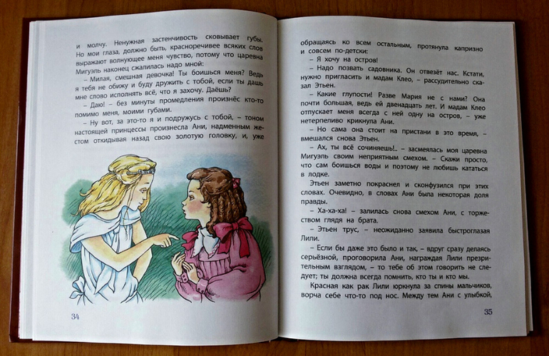 Как вы понимаете, в такой обстановке им не было дела до текста или сюжетной линии. Все более менее нормализовалось с появлением на картинках девочки. Дочка решила, что в этой книге она будет принцессой, а я решила, что мы наконец-то спокойно почитаем. Но тут начались споры по поводу того, были ли это разные девочки или одна и та же. И как я не пыталась их убедить, что девочка в книге одна, дочка была стойко убеждена, что они разные и она должна выбрать из них самую красивую.