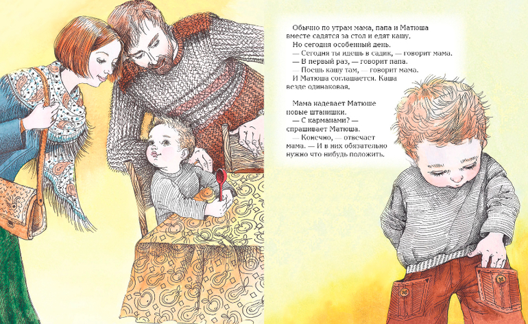 Автор книги известная и любимая многими Ирина Зартайская, мама четырёхлетнего мальчика, знающая из личного опыта насколько сложно дети привыкают к детскому саду. В книге рассказывается о первом дне в детском саду мальчика Матюши, о его переживаниях и страхах. Книга знакомит с режимом дня детского садика, с правилами и обстановкой. Прочитайте книгу вместе с ребёнком, рассмотрите замечательные акварельные иллюстрации, выслушайте и развейте все тревоги вашего малыша. Тем самым Вы постепенно подготовите его к изменениям и привыкание к детскому саду пройдет безболезненно.