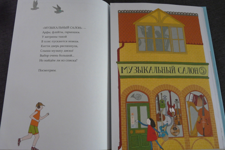 На этом развороте множество муз.инструментов ,названия которых можно проговорить ,в булочной разные виды сдобы ,тоже можно выяснить,что такое коржик,коврижка,бублик,сайка,ватрушка,сушка,рогалик и т.д