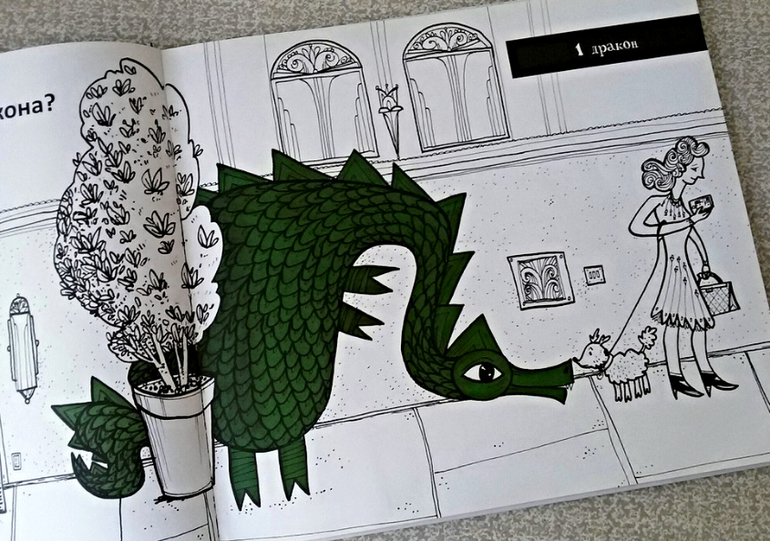 Такие необычные обе! Почему-то и у меня не возникло желания раскрасить книгу про дракона. Хорошо смотрится в чёрно-белом с цветными дополнениями, стильно!