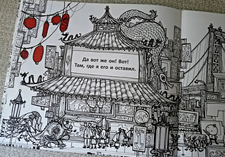 Книга "вы не видели моего дракона?"в наш дом попала случайно, я выиграла её в одной книжной группе. Сама бы не обратила на неё внимание. Но книга действительно очень любима в нашем доме двумя моими мальчишками. Считают, ищут и пальчиком как по лабиринту водят.