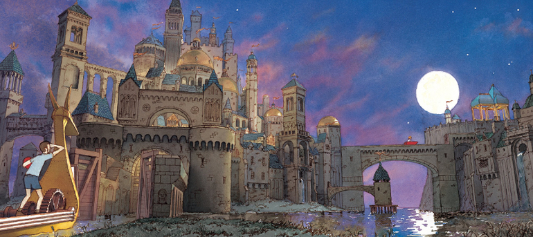 Книга достается с полки каждый вечер. Каждый раз мы с дочкой замечаем новые детали, придумываем что и как было дальше, рассматриваем просто шикарные рисунки. Как написано на самой книге - автор много путешествовал, поэтому волшебные страны на картинках имеют разные стилистики - от востока до Индии, морские приключения, полеты в воздухе.