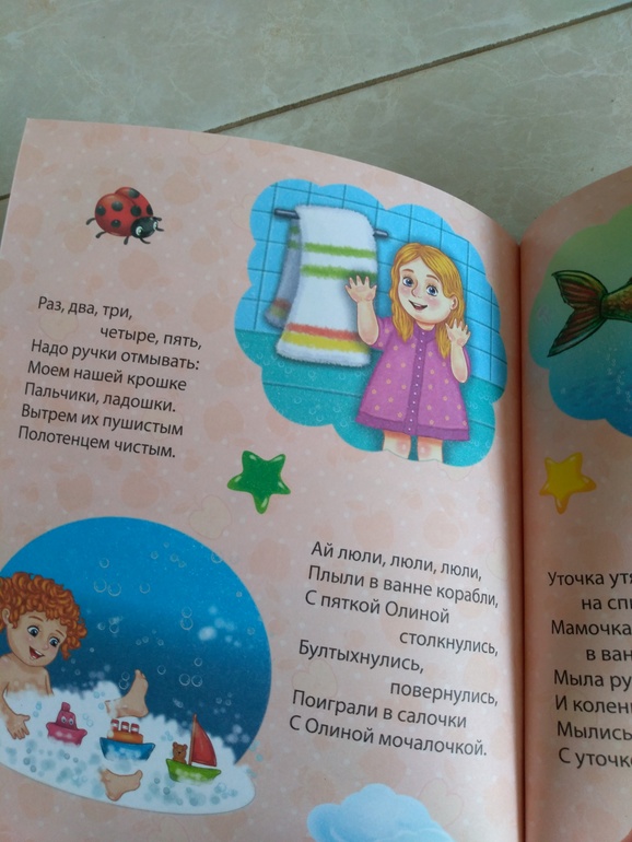 Потешки про то, что нужно умываться, чистить зубы, принимать ванну, а также в книге есть стишки про утро.