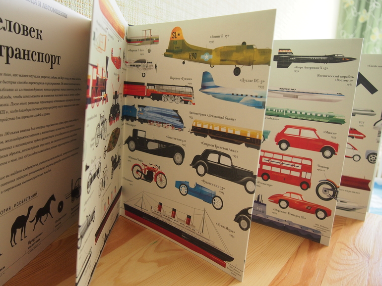 Книга «Самолеты, поезда и автомобили». История современного транспорта в 100 рисунках с иллюстрациями Майка Лемански, оказалась нам рановатой. Рассматривали с сыном только локомотивы и вагоны поездов) Сама книга мне понравилась, было интересно посмотреть и почитать про уникальные виды транспорта. Думаю, сыну после 5 лет станет более интересна эта книга.