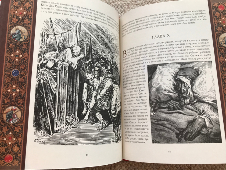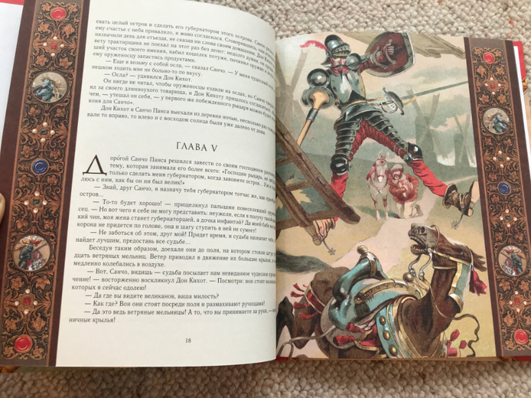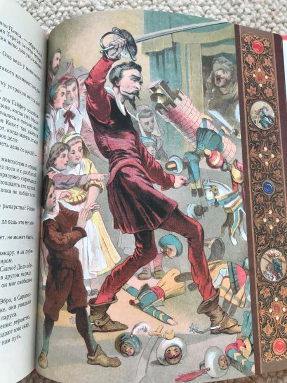 Третье произведение это "Дон Кихот Ламанчский, рыцарь Печального образа и рыцарь Львов", так же как и первая книга, это пересказ для детей. Все произведение уложилось на 76 страницах.С замечательным оформлением , яркими рисунками , местами правда вызывающих смешок.