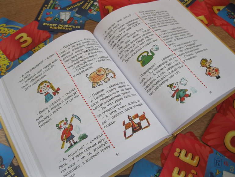 Но это не значит, что Костя книгу не полюбил. Он просто бабушку с дедушкой стал пугать рассказами про омонимы и синонимы и заставлял их придумывать слова на одну букву))