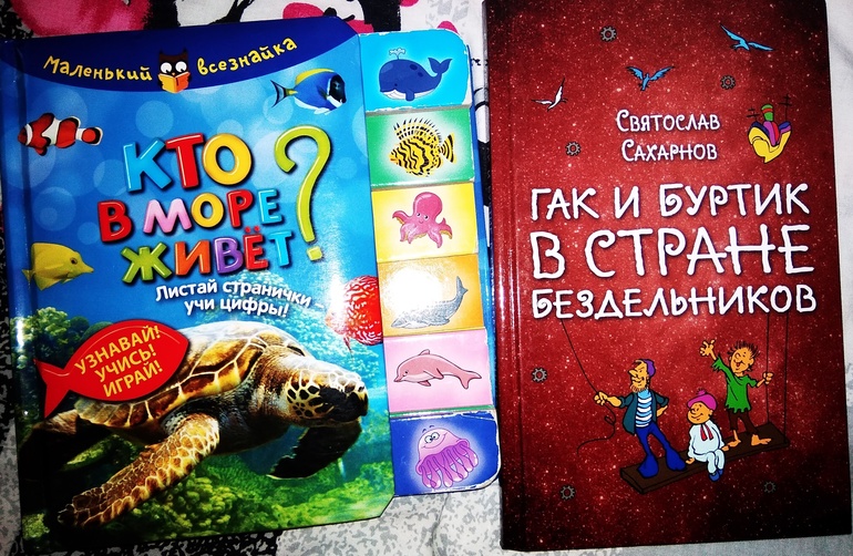 А кто ещё обитает в водах морских? Вечером с удовольствием заглянули к Маленькому Всезнайке от "Рипол Классик", заодно повторили счет до пяти со старшей и до двух с младшим, показали на пальчиках цифры и ручками, как двигаются морские обитатели: