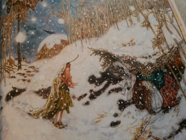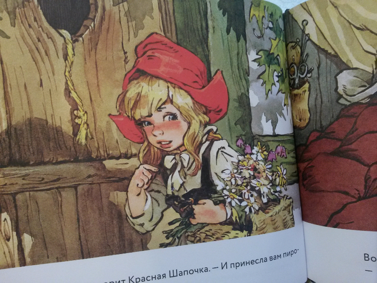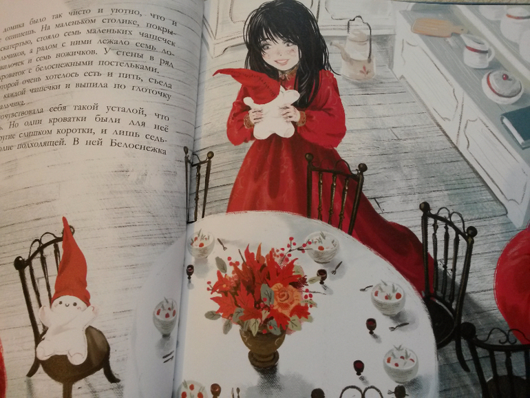 А еще прочитали с Ефремовой. И тоже Илюхе понравилось. Тут меня просто покорило сочетание белого, черного и красного в иллюстрациях. Красота! В комплекте с Дюймовочкой эта книга здорово смотрится) И перевод устроил - нет никаких ужасов, вроде раскаленных туфель и прочего)