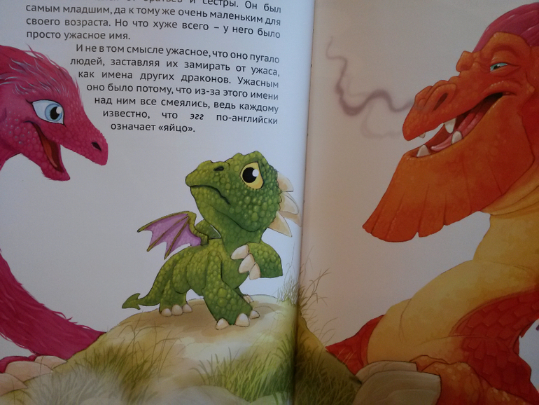 И не мог у нас не поселиться) Сюжет в книге тоже довольно простой, а вопрос ставится очень важный. Быть не таким, как все, быть уникальным - плохо это или хорошо? Дракончик Эгги, появившийся из треснутого яйца, слабее всех, меньше всех, один способен потушить лесной пожар, ведь только у него открывается уникальный дар - он единственный в мире ледяной дракон. Иллюстрации замечательные! Столько разных драконов в книге!)