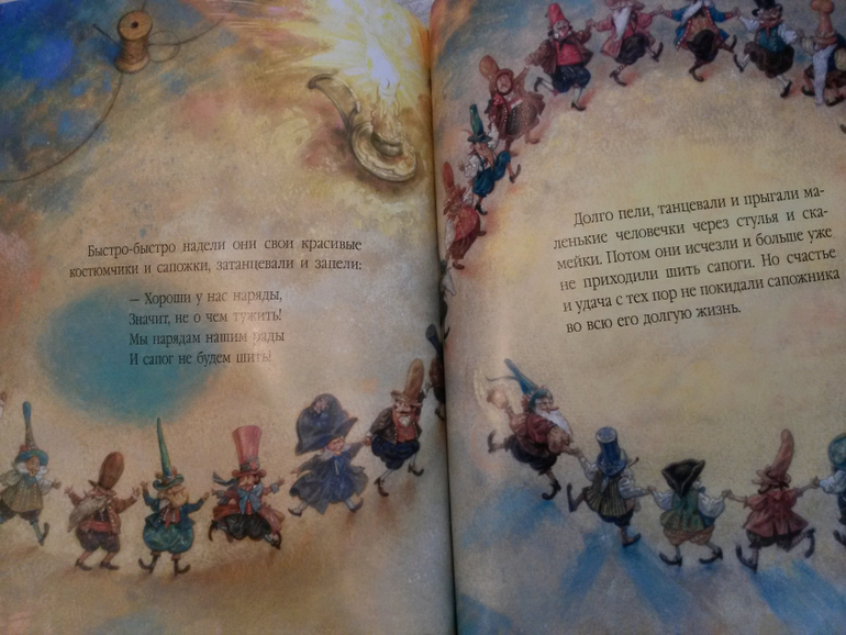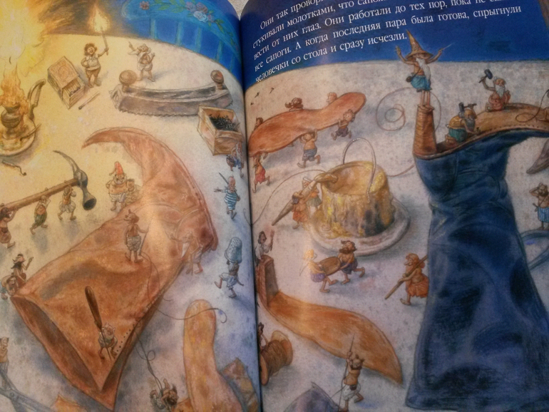 Еще одна полюбившаяся в последнее время сказка - братьев Гримм. Илюха сам часто сидит с книгой - внимательно рассматривает маленьких сапожников)