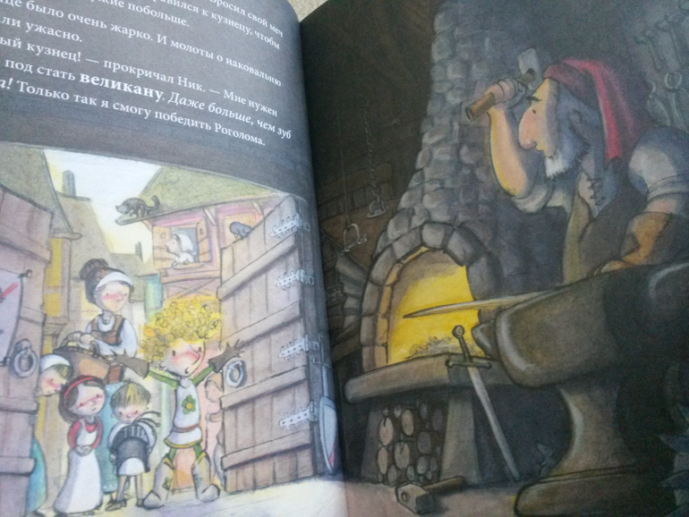 Иллюстрации понравились. Илюху поразило, что у дракона сломан рог. Почему? Обсудили-подумали. А еще долго рассматривали кузницу и обсуждали работу кузнеца.