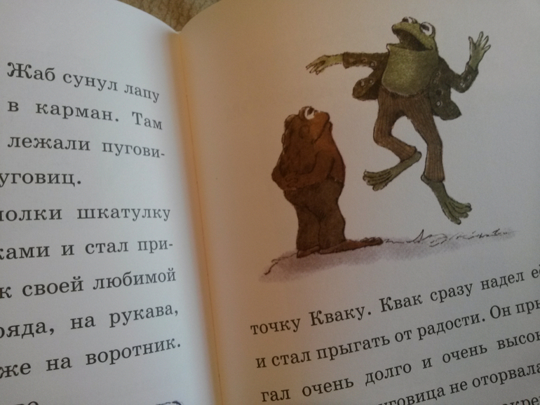 Воздушный змей, Шляпа, Пуговица, Завтра, Мурашки... Да тут хоть все истории перечисляй - все любимые) Герои - Квак и Жаб - просто очаровательны) Но, пожалуй, главным героем книг является дружба, настоящая дружба. Что бы ни случилось с Кваком и Жабом, они все равно будут дружить! Как же здорово!!! У нас пока 2 книги из 4. Будем искать)))) Вот бы переиздали!