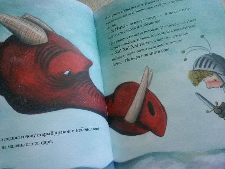 Конечно же, появился у нас ) История понравилась) Трогательный маленький рыцарь так мечтает одолеть дракона, сразить его в бою, но ничего у него не выходит - дракон и сражаться то с ним не хочет. И, естественно, в конце они становятся друзьями) Книга хорошая, но с одним недостатком - быстро заканчивается)))) Нам с Илюхой хочется уже интриг, событий... сюжета) нам показался интереснее, но Ник тоже хорош)