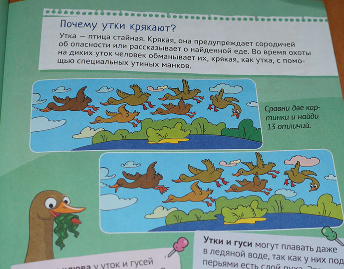 Помимо интересной информации, на страничках много разнообразных головоломок (на прохождение лабиринтов, распознавание теней, поиск отличий или мелких деталей на картинке, раскрашивание картинок по номерам и прочее). В самом конце книги на все головоломные задания есть ответы.