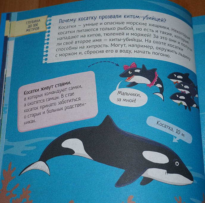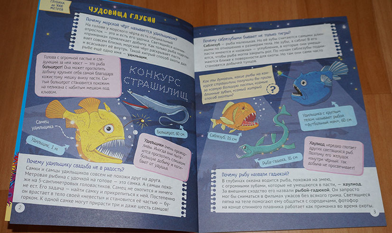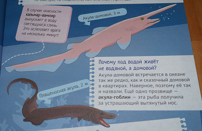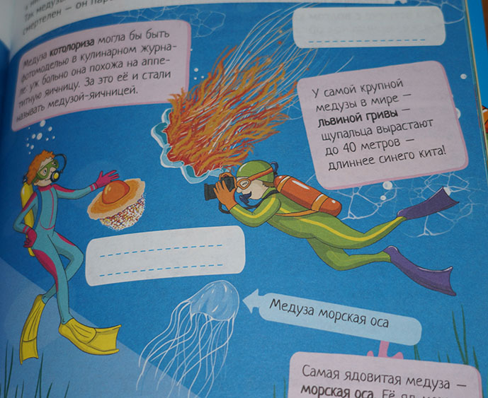 Из этой книги мы узнаем об обитателях разных глубин, а также о разных видах рыб, моллюсков, медуз и многих многих других.