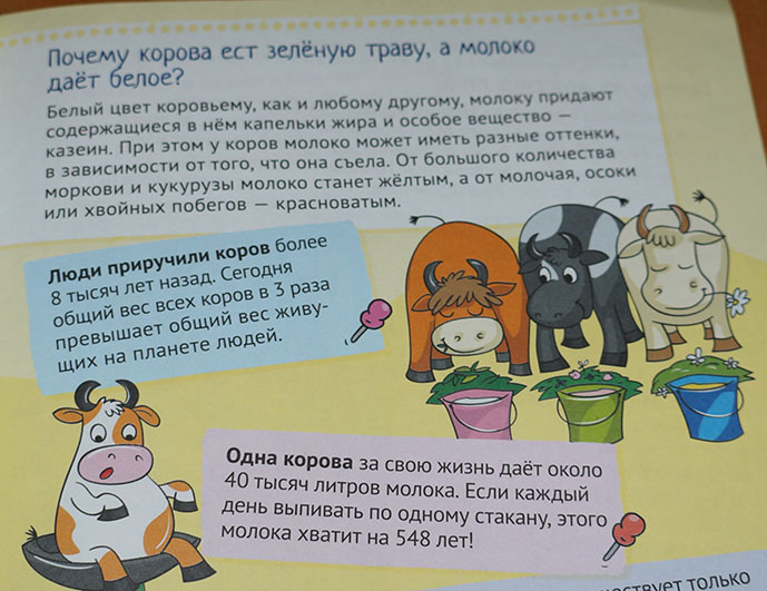 Информация о других животных в книге не менее интересна. Оказывается, молоко коровы может приобретать желтые или красноватые оттенки в зависимости от того, что эта сама корова съела.