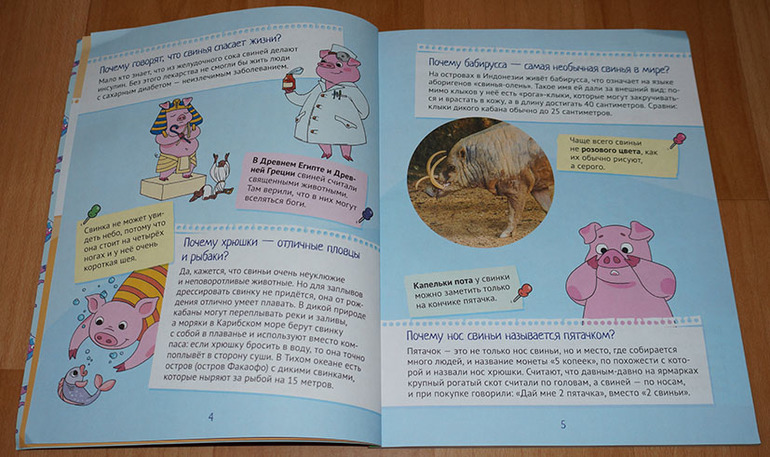 Хрюшкам посвящены первые три разворота. Мы узнаем, почему свинки так любят прохладные и грязные лужи,